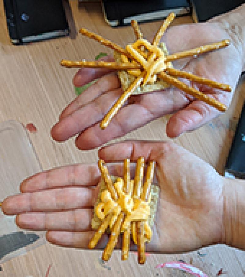 Her subject of choice right now? Pretzels and Cheez Whiz.